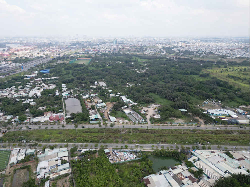 Hiện nay, khu vực dự án chủ yếu là đất nông nghiệp, nuôi trồng thủy sản, sông rạch và một số công trình tạm. Khoảng 400 hộ dân (gần 1.600 người) đang sinh sống với nhà cấp 4, nhà tạm, nhà trọ. Một số diện tích được sử dụng làm kho bãi, sân bóng, hồ câu cá hoặc sân tập golf. Lễ động thổ dự án đã diễn ra ngày 15/1/2026, đánh dấu bước chuyển quan trọng sau nhiều năm quy hoạch.