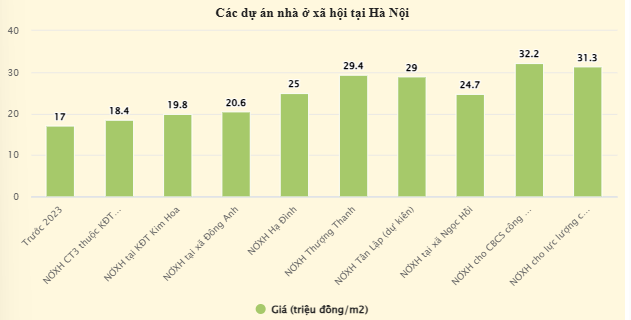 Mức giá này đưa dự án trở thành một trong những nhà ở xã hội “đắt đỏ” nhất hiện nay tại Hà Nội, chỉ đứng sau dự án nhà ở xã hội cho lực lượng công an tại 275 Nguyễn Trãi (phường Thanh Xuân), được công bố với giá hơn 32 triệu đồng/m2 (chưa bao gồm thuế VAT và phí bảo trì) vào cuối tháng trước.