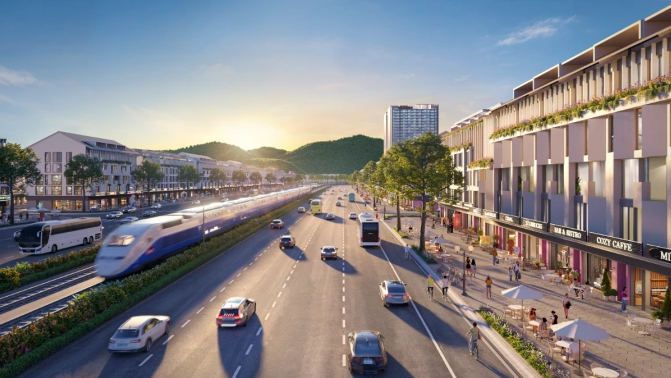 Trục DT975 rộng 62 m, quy mô 10 làn xe và 2 làn metro, kề cận ga Metro số 4, tạo điều kiện thuận lợi cho nhiều mô hình kinh doanh. Nhóm F&B (ẩm thực, cà phê) có thể khai thác khách lẻ và khách đoàn, trong khi bán lẻ, showroom hay lưu trú tận dụng lợi thế tiếp cận và nhận diện trên trục đường lớn.