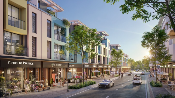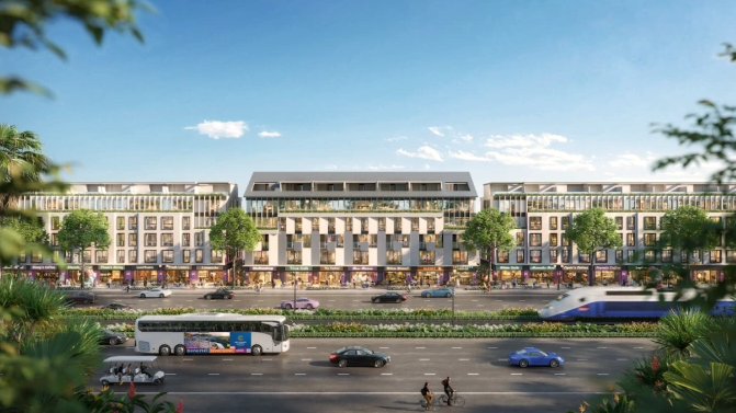 Bên cạnh vị trí, yếu tố thiết kế góp phần quyết định hiệu quả khai thác. Dự án gồm 218 căn shophouse với mô hình "vừa ở - vừa kinh doanh", cao 3-5 tầng, diện tích 104-325,85 m2. Mỗi căn có thể phân tầng công năng: tầng trệt kinh doanh, tầng giữa làm văn phòng hoặc studio, tầng trên khai thác lưu trú ngắn hạn. Cấu trúc này giúp tối ưu công suất sử dụng và tạo "đa dòng tiền", giảm phụ thuộc vào một nguồn thu duy nhất.