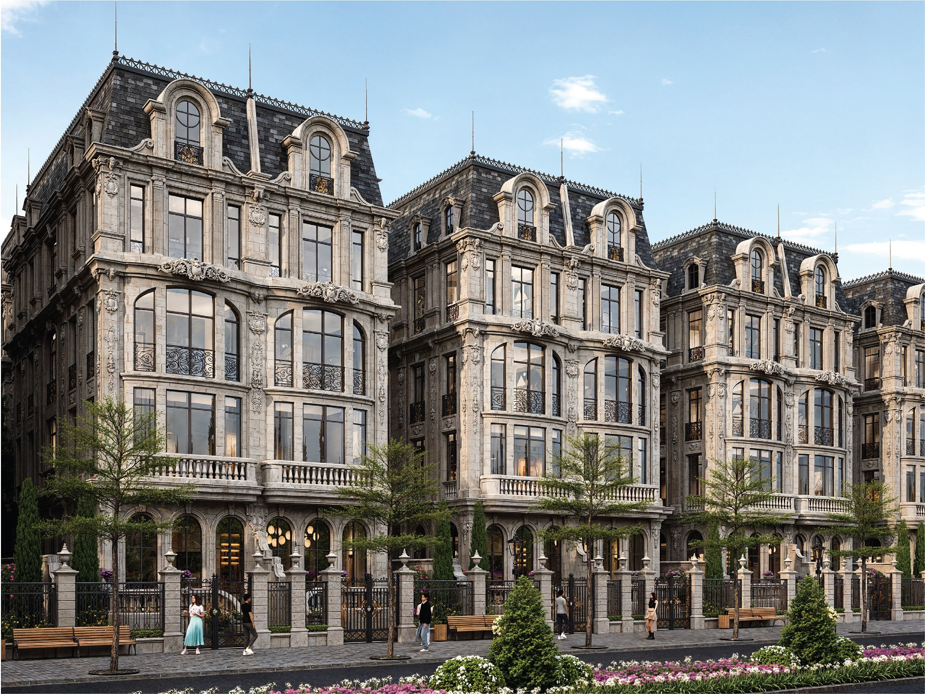 Ở lớp giá trị sản phẩm, những dinh thự được phát triển theo phong cách kiến trúc cổ điển châu Âu, quy hoạch đồng bộ với mật độ xây dựng thấp, tạo nên một không gian sống mang tính biệt lập so với các khu đô thị đại trà. 100% dinh thự được thiết kế với hồ bơi riêng, vườn tư gia và không gian đa năng linh hoạt, vận hành theo tiêu chuẩn 5 sao, đồng thời tích hợp hệ tiện ích khép kín gồm clubhouse, lounge bar riêng tư và công viên xanh theo chuẩn sống châu Âu.