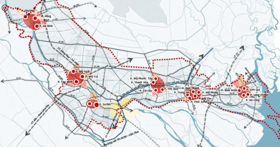 Những đô thị này được lựa chọn để ưu tiên hoàn thiện, nâng cao chất lượng hạ tầng và quản trị đô thị trong giai đoạn chuyển tiếp, thay vì mở rộng dàn trải. Chúng tạo thành mạng lưới liên kết dọc sông Tiền – sông Hậu, kết nối biên giới, vùng Đồng Tháp Mười và ven biển.