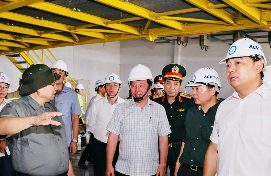 Thủ tướng Phạm Minh Chính và đoàn công tác đã kiểm tra thực tế tiến độ thi công các hạng mục của gói thầu thi công xây dựng công trình nhà ga hành khách Sân bay Long Thành giai đoạn 1, thuộc Dự án Thành phần 3 và trung tâm kiểm soát không lưu thuộc Dự án Thành phần 2.