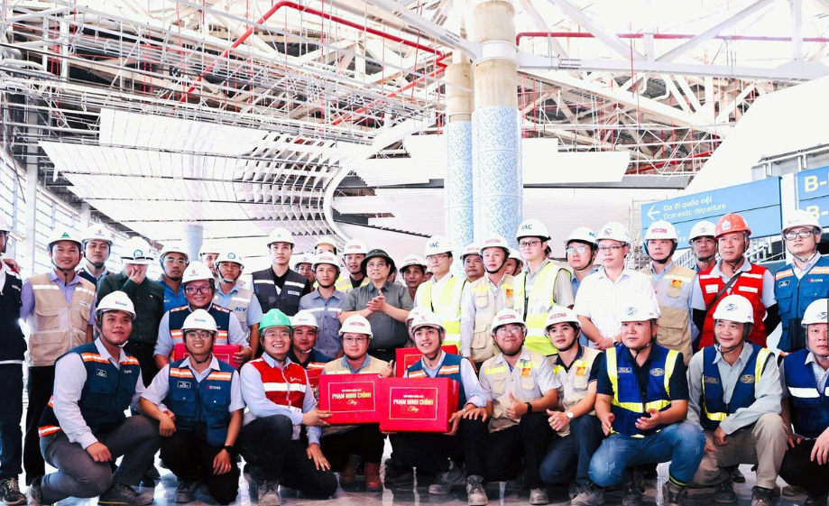 Tại công trường Thủ tướng Chính phủ đã trao những phần quà động viên các cán bộ, công nhân viên, người lao động tại dự án sân bay Long Thành.